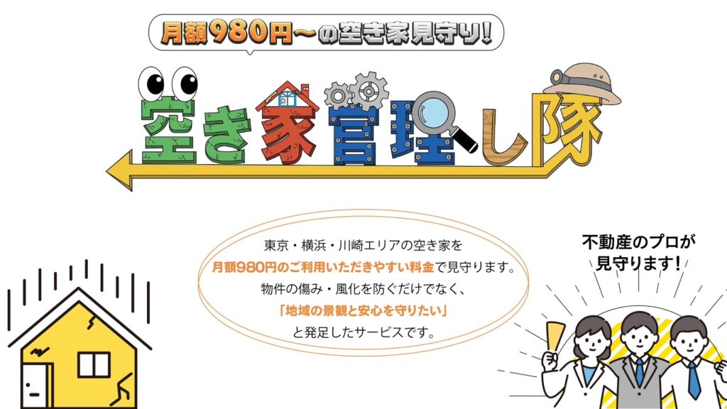 地域の安全と景観を守るため、「空き家管理し隊」として、月額980円の空き家管理を行っています。
